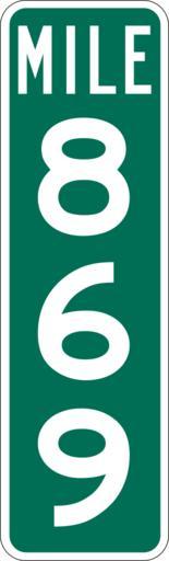 | Keywords: Mile Marker 869.svg PD MUTCD Rfc1394 457 1676 18 60 triple digit mile marker D10-3 Made using Viridian SVG Batcher this file was fabricated by a program 2009-03-05 Paul Robinson Rfc1394 Own work all rights released Public domain D10-3 - Distance Signs-3 Digit |