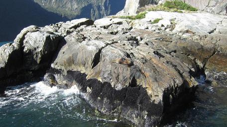 Keywords: milford sound seal rocks walrus fur seal seals sea rock new zealand