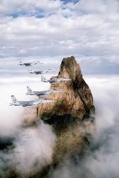 Keywords: military aircraft flying formation f-15 rock formation fog plane airplanes jets us air force landscape