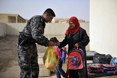| Keywords: Military Civil Medical Operation DVIDS341139.jpg en A member of the Bayji Special Weapons and Tactics unit distributes groceries and a backpack to an Iraqi patient during Military Civil Medical Operation at the Bujwari medical clinic Members of the Bayji SWAT unit provided assistance and security to the people visiting the clinic on Sept 29 The operation was a combined effort between the Iraqi Ministry of Health the Bayji Special Weapons and Tactics unit Bujwari police Sons of Iraq and U S Special Operations Task Force-North Members of the Combined Joint Special Operations Task Force-Arabian Peninsula advise train and assist the Iraqi Security Forces during Operation New Dawn 2010-09-29 Photo by U S Navy Mass Communications Specialist 2nd Class Devin Brown https //www dvidshub net/image/341139 100929-N-+++++-197 2010-11-17 16 10 BAYJI IQ PD-USGov-Military-Navy Sons of Iraq Images from DoD uploaded by Fæ |