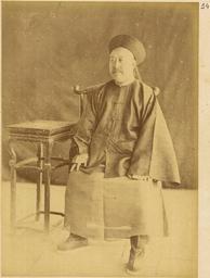 | Keywords: Military Governor of the Town of Hami, Xinjiang, 1875 WDL1906.png Artwork ru Боя ский Адольф- иколай Э азмович fr Boiarskii Adolf-Nikolay Erazmovich en Boiarskii Adolf-Nikolay Erazmovich zh 阿道夫 伊拉莫维奇 鲍 尔斯基 pt Boiarskii Adolf-Nikolay Erazmovich ar أدولف-نيكولاي إرازموفيتش بويارسكي es Boiarskii Adolf-Nikolay Erazmovich ru Военный губе нато го ода Хами Синьцзян Китай 1875 г fr Gouverneur militaire de la ville d'Hami dans la province du Xinjiang 1875 en Military Governor of the Town of Hami Xinjiang 1875 zh 新疆哈密军事 ,1875 年 pt Governador militar da vila de Hami Xinjiang 1875 ar الحاكم العسكري لمدينة هامي، شينجيانغ، 1875 ru В 1874 1875 гг оссийское п авительство нап авило в Китай учено-то говую экспедицию с целью поиска новых сухопутных ма ш утов к китайскому ынку оценок возможностей для более активной то говли и для асположений консульств и фаб ик а также сбо а инфо мации о Дунганском восстании бушевавшем в то в емя в западных айонах Китая Экспедиция уководителем кото ой был полковник Гене ального штаба Ю А Сосновский состояла из девяти человек капитана атусовского топог афа докто а Павла Яковлевича Пясецкого научного сот удника пе еводчиков с усского и китайского языков т оих казаков и фотог афа экспедиции Адольфа Э азмовича Боя ского Экспедиция отп авилась из Санкт-Пете бу га в Шанхай че ез Улан-Бато онголия Пекин и Тяньцзинь и затем последовала по ма ш уту вдоль еки Янцзы по Великому шелковому пути п оходя че ез оазис Хами к озе у Зайсан об атно в Россию Боя ский сделал около 200 снимков кото ые легли в основу уникальных мате иалов для изучения Китая того в емени Большая часть фотог афий вошла в этот альбом кото ый позже стал частью коллекции Те езы К истины а ии соб анной импе ато ом Б азилии Пед у II и пе еданной им ациональной библиотеке Б азилии <br>Китайцы; Госуда ственные чиновники; Память ми а; По т етные фотог афии; Династия Цин 1644-1911 гг fr En 1874-1875 le gouvernement russe organisa une mission commerciale et de recherche en Chine Cette mission avait pour objectif de trouver de nouvelles routes terrestres vers le marché chinois d'étudier les perspectives d'une expansion commerciale de rechercher des sites pour l'installation de consulats et d'usines et de recueillir des informations sur la révolte de Dungan qui faisait alors rage dans les provinces de la Chine occidentale Composée de 9 hommes et dirigée par le lieutenant-colonel Iulian A Sosnovskii de l'état-major général de l'armée cette mission comprenait également un topographe le capitaine Matusovskii un responsable scientifique le Dr Pavel Iakovlevich Piasetskii des interprètes chinois et russes trois sous-officiers cosaques et le photographe de la mission Adolf Erazmovich Boiarskii La mission se déroula de Saint-Pétersbourg à Shanghai en passant par Oulan-Bator Mongolie Pékin et Tianjin Elle longea ensuite le fleuve Yangtsé et suivit la grande Route de la soie à travers l'oasis Hami et jusqu'au lac Zaysan de retour en Russie Adolf Erazmovich Boiarskii prit quelque 200 photographies ce qui constitue une source unique pour l'étude de la Chine de cette période La plupart des photographies prises durant cette mission apparaissent dans cet album lequel rejoignit par la suite la collection Thereza Christina Maria rassemblée par l'empereur Pierre II du Brésil qui en fit don à la Bibliothèque nationale du Brésil <br>Chinois; Hauts fonctionnaires; Mémoire du monde; Portraits photographiques; Dynastie Qing 1644-1911 en In 1874-75 the Russian government sent a research and trading mission to China to seek out new overland routes to the Chinese market report on prospects for increased commerce and locations for consulates and factories and gather information about the Dungan Revolt then raging in parts of western China Led by Lieutenant Colonel Iulian A Sosnovskii of the army General Staff the nine-man mission included a topographer Captain Matusovskii; a scientific officer Dr Pavel Iakovlevich Piasetskii; Chinese and Russian interpreters; three non-commissioned Cossack soldiers; and the mission photographer Adolf Erazmovich Boiarskii The mission proceeded from Saint Petersburg to Shanghai via Ulan Bator Mongolia Beijing and Tianjin and then followed a route along the Yangtze River along the Great Silk Road through the Hami oasis to Lake Zaysan back to Russia Boiarskii took some 200 photographs which constitute a unique resource for the study of China in this period Most of the photographs are included in this album which later became part of the Thereza Christina Maria Collection assembled by Emperor Pedro II of Brazil and given by him to the National Library of Brazil <br>Chinese; Government officials; Memory of the World; Portrait photographs; Qing dynasty 1644-1911 zh 1874-1875 年,俄罗斯政 向中国派出 支科学和贸易 察团, 察经由陆