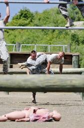 | Keywords: Military Police Warfighter Competition 110816-N-RF645-034.jpg en Soldiers assigned to the 525th Military Police Battalion Warfighters team at Joint Task Force Guantanamo Bay make their way through an obstacle course to a simulated wounded casualty during a first response training evolution Aug 16 The Warfighters are representing the 525th MP Battalion at the upcoming Military Police Warfighter Competition held at Fort Leonard Wood Mo The competition presents numerous warrior tasks battle drills and endurance tests to participating three-man teams from installations worldwide 2011-08-16 Petty Officer 2nd Class Kilho Park https //www dvidshub net/image/444182 110816-N-RF645-034 2011-08-17 12 26 CU PD-USGov-Military-Navy Joint Task Force Guantanamo Fort Leonard Wood Guantanamo Bay Images from DoD uploaded by Fæ 525th Military Police Battalion United States |