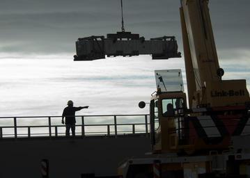 | Keywords: Military Sealift Command 131120-N-YM863-946.jpg en Personnel from Navy Munitions Command CONUS West Division Unit Seal Beach offload a vertical-launch missile canister from a barge during ordnance operations conducted with the Military Sealift Command dry cargo and ammunition ship USNS Carl Brashear T-AKE 7 U S Navy photo by Mass Communication Specialist 1st Class Eli J Medellin/Released 2013-11-20 Petty Officer 1st Class Eli Medellin https //www dvidshub net/image/1059158 131120-N-YM863-946 2013-11-22 23 32 LONG BEACH CA US PD-USGov-Military-Navy USNS Carl Brashear T-AKE-7 Images from DoD uploaded by Fæ |