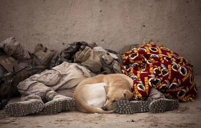 Keywords: military soldiers sleeping rest dog canine uniform american service