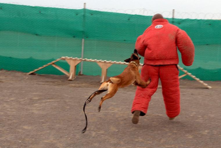 | Keywords: Military Working Dogs makes Soldiers job easier DVIDS174404.jpg en Sgt Mario Allen a military dog handler with the Task Force Guardian Salerno K-9 unit runs as he gets attacked by a patrol explosive detection dog during a training session May 4 at Forward Operating Base Salerno in eastern Afghanistan 2009-05-04 Staff Sgt Marcus Butler https //www dvidshub net/image/174404 174404 2009-05-24 10 35 FORWARD OPERATING BASE SALERNO AF PD-USGov Forward Operating Base Salerno Images from DoD uploaded by Fæ |