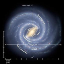 Keywords: Milky Way 2008 annotated sv.jpg en Artist's conception of the spiral structure of the Milky Way with two major stellar arms and a central bar This is an annotated version in Swedish derived from File Milky Way 2005 jpg 2008 updates included which originates from NASA The text includes the names of major galactic arms the Sun's position and approximate distances and galactic logitutes sv En konstnärs vy av Vintergatan ursprungligen från NASA med inlagd svensk text som beskriver galaxens armar solen position en skala med ungefärliga avstånd samt galaktiska longituder 2012-01-06 own Kjell André This file is a derivative ofm File Milky Way 2005 jpg cc-zero Uploaded with UploadWizard Milky Way maps Galactic coordinate system