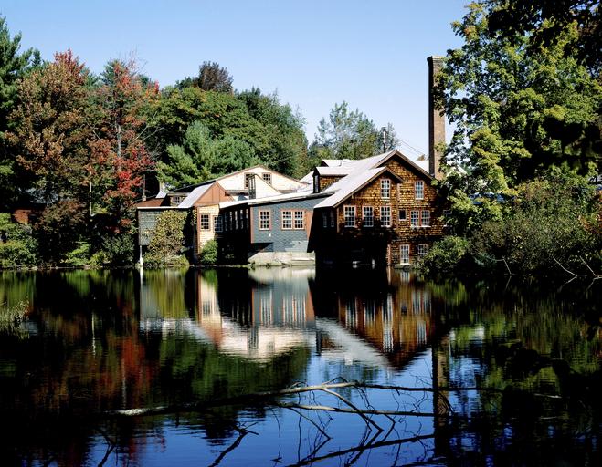 Keywords: mill building old mill old historically flour mill romantic idyllic frye's measure mill wilton new hampshire usa united states north america america river water romance atmospheric landscape trees forest