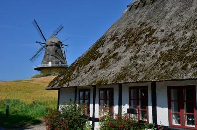 Keywords: mill denmark summer holiday windmill wind returned minde summer sun blue sky thatched roof truss traditionally craft