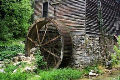 Keywords: mill gatlinburg tennessee building water wheel water tourists