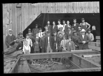 | Keywords: group portrait groupportrait palmer lumber mill lumbermill botany expedition botanyexpedition tree portraits treeportraits huron h. smith huronhsmith oregon 1910 1911 blackandwhite monochrome black and white Mill hands [crew of men]. Group portrait. 1910. Name of Expedition: Huron H. Smith Expedition to Oregon Participants: Huron H. Smith Expedition Start Date: 1910 Expedition End Date: 1911 Purpose or Aims: Collecting Botany specimens, taking portraits of trees Location: Palmer, Oregon, U.S.A., North America Original material: 5x7 glass negative Digital Identifier: CSB32972 Learn more about The Field Museum's Library Photo Archives. Mill hands [crew of men]. Group portrait. 1910. Name of Expedition: Huron H. Smith Expedition to Oregon Participants: Huron H. Smith Expedition Start Date: 1910 Expedition End Date: 1911 Purpose or Aims: Collecting Botany specimens, taking portraits of trees Location: Palmer, Oregon, U.S.A., North America Original material: 5x7 glass negative Digital Identifier: CSB32972 Learn more about The Field Museum's Library Photo Archives. |