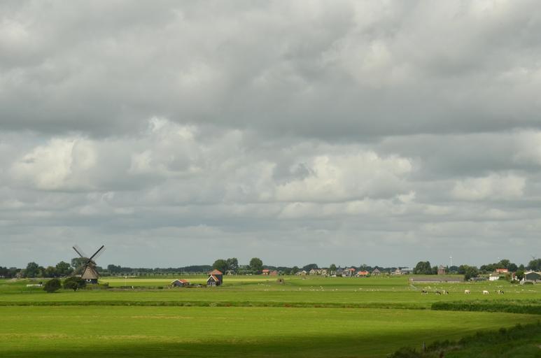 Keywords: mill wind mill countryside pasture agricultural sun shadow cloud threat dark storm landscape netherlands