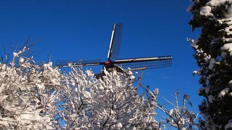 Keywords: mill wind mill netherlands landscape monument mill blades historic building historic mill air snow blue winter winter landscape blue sky snowy tree plants branch freezing branches sun cold frozen freeze ice white