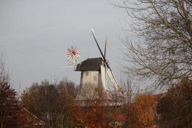 Keywords: mill windmill autumn wing building flour mill meadow trees colorful