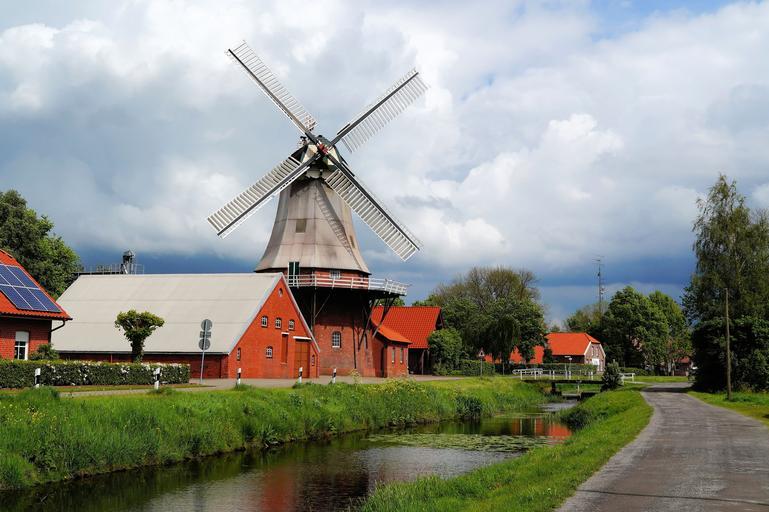 Keywords: mill windmill wing architecture flour mill grind sky blue east frisia