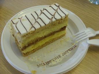 Keywords: Mille-feuille.JPG en Mille-feuille own Antonio Borrillo 2011-02-25 Cc-zero Mille-feuille Squares dessert Powdered sugar icing Brown and white icing food