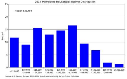 | Keywords: Milwaukee household income distribution.svg translate yes en Distribution of household income in Milwaukee Michigan Data from http //factfinder census gov/bkmk/table/1 0/en/ACS/14_5YR/DP03/1600000US5553000 US Census in 2014 inflation adjusted dollars 2016-06-02 own Delphi234 other versions cc-zero Income distribution in the United States Milwaukee Wisconsin |