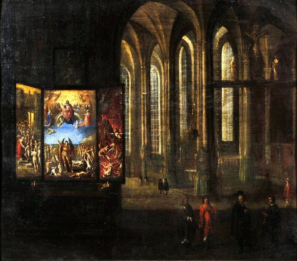 Keywords: Milwitz St. Mary's Church in Gdańsk.jpg attributed to ca 1635 oil canvas wood cm 66 76 St Mary's Church Gdańsk accession number object history century 19 transfer Dohna-Lauck Palace Markowo Reichertswalde > 1940 transfer Moritzburg Castle Halle > 1945 transfer Dohna-Lauck family ProvenanceEvent 2008 transfer Dorotheum Auction House Vienna Louven ProvenanceEvent 2008 purchase St Mary's Church Gdańsk credit line The painting depicts the interior of St Mary's Church in Gdańsk with the open altar displaying The Last Judgment by Hans Memling in the foreground The church and the altar itself is being shown to a notable dressed in black identified as French ambassador Charles Ogier who visisted Poland in 1635 Magdalena Marcinkowska 2009 Obraz w obrazie czyli tajemnicze dzieło z Memlingiem w tle Cenne Bezcenne Utracone No 4 61 Nov-Dec 2009 See below PD-old-100 DEFAULTSORT 1635 circa; St Mary's Church in Gdańsk Bartholomäus Milwitz Paintings in the St Mary's Church in Gdańsk History of the Church of St Mary in Gdańsk The Last Judgment Memling Diplomacy of the Polish-Lithuanian Commonwealth Paintings of church interiors 1630s paintings in Poland ImageNote 1 51 367 521 478 1345 1185 2 painting the Last Judgment ImageNoteEnd 1