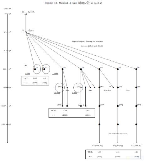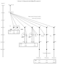 | Keywords: MinDiscriminantsCoclass2Type33Sporadic.png This diagram shows the interface between the graphs of finite 3-groups with coclass 1 and 2 and abelianization of type 3 3 Important vertices are labelled with their SmallGroups Library identifier in angle brackets The vertices 5 7 57 and 45 are most densely populated by second 3-class groups of complex quadratic fields with discriminant d<0 The underlined counters adjacent to the ovals surrounding these vertices give the minimal absolute discriminants of the distribution TKT means transfer kernel type <br/> User DanielConstantinMayer added png file MinDiscriminantsCoclass2Type33Sporadic The minimal discriminants were computed in 1934 by Scholz and Taussky d -4027 and in 1982 by Heider and Schmithals the other three d values 2014-10-18 DanielConstantinMayer talk Uploads This file has been updated and corrected by a tiff file with identifier MinDiscriminantsCoclass2Type33Sporadic tiff DanielConstantinMayer wikipedia en Cc-zero Original upload log en wikipedia MinDiscriminantsCoclass2Type33Sporadic png wikitable - 2014-10-18 17 29 661×738× 60497 bytes DanielConstantinMayer User DanielConstantinMayer added symbols of isoclinism families - 2014-10-18 13 13 657×737× 58854 bytes DanielConstantinMayer User DanielConstantinMayer added png file MinDiscriminantsCoclass2Type33Sporadic Uncategorized 2016 May 5 |