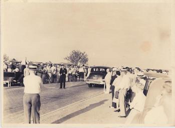 | Keywords: Mineral Wells-Weatherford brick road opening.jpeg en A new brick-topped highway was opened between Mineral Wells and Weatherford in 1936 In the opening ceremony J Pat Corrigan is identified cutting the symbolic ribbon held by Allan Wallace and W A Ross The new brick highway began at NE 9th Avenue and extended along East Hubbard Street Brick paving the 21-mile stretch of road was laid entirely by hand by two black men whose names were never preserved for posterity 1936 http //texashistory unt edu/ark /67531/metapth25095/ q highway author Original photograph is part of the A F Weaver Collection of the Boyce Ditto Pulbic Library Mineral Wells Texas Digital version released with public rights in partnership with The Portal to Texas History of the University of North Texas Libraries' Digital Projects Unit cc-zero State highways in Texas Uploaded with UploadWizard |
