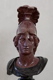 | Keywords: Minerva Alexander Mazarin Louvre Ma3385.jpg Bust of Minerva also known as the Mazarin Alexander first described in the collections of Cardinal Mazarin as a bust of Alexander the Great bought by Louis XIV as a Minerva the bust probably copies the type of the Mattei Athena Porphyry and metal bust 2nd century CE or pastiche of the 17th century H 84 5 cm 33 ΒΌ in Museum Louvre Department of Greek Etruscan and Roman antiquities Denon ground floor room A object history credit line Former collections of Cardinal Mazarin accession number Ma 3385 MR 1633 Jastrow 2006 other versions Bust of Minerva Ma 3385 |