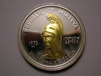 | Keywords: Minerva Republic.JPG en The obverse of the 35 Minerva Dollar coin - 1973 Own Rosser1954 Roger Griffith 2009-03-21 A defunct Micronation in the South Pacific Token coins Republic of Minerva Currencies of micronations Modern coins with Athena Minerva Minerva on coins |
