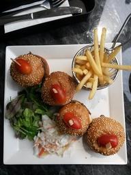 Keywords: mini burger fries tomato salad
