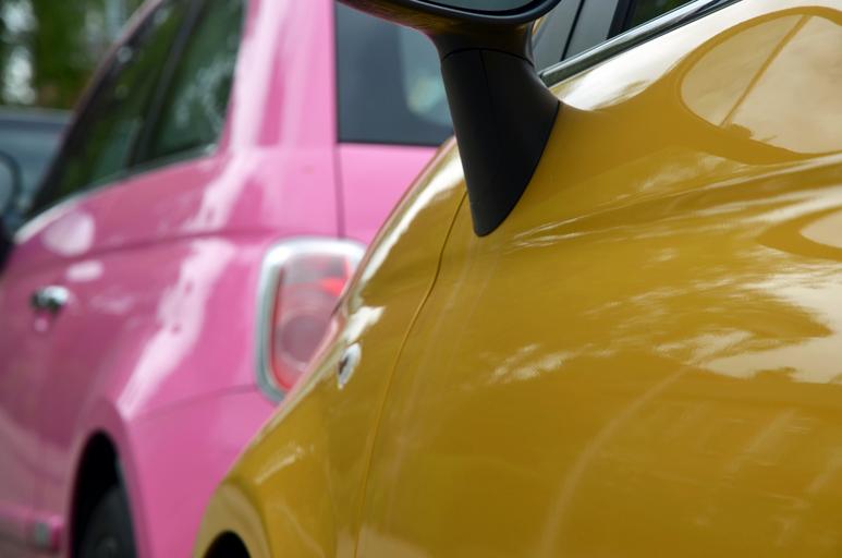 Keywords: mini cooper cars traffic pink yellow shine colour