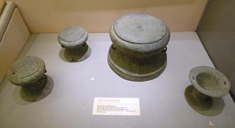 | Keywords: Miniature drums (1) and urn (2) for funerary use, Dong Son culture, c. 2500-2000 years before present, bronze - National Museum of Vietnamese History - Hanoi, Vietnam - DSC05469.JPG en Exhibit in the National Museum of Vietnamese History Hanoi Vietnam Photography was permitted in the museum without restriction This artwork is old enough so that it is in the public domain 2014-08-06 02 50 43 own Daderot other versions cc-zero Uploaded with UploadWizard Dong Son bronze drums National Museum of Vietnamese History |