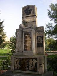 | Keywords: Minice Kralupy nad Vltavou ME CZ WWI memorial 109.jpg Pomník obětem 1 světové války a nacistické okupace při Pražské ulici v parčíku naproti faře v Minicích předměstí Kralup nad Vltavou okres Mělník Autorem díla odhaleného roku 1932 je Břetislav Vobořil z Kralup nad Vltavou World War I memorial with additional plaque to victims of the Nazi occipation in Minice suburb of Kralupy nad Vltavou Czech Republic 0 cellpadding 15 cellspacing 0 style text-align left; background 664444; color yellow - text-align center; background none; text-align center; <br /><br /><br /> <big>HROBŮM V DÁLI</big> <br /><br /> text-align center; background none; - text-align center; <big>1914</big> text-align center; text-align center; <big>1918</big> - text-align center; text-align center; 0 cellpadding 15 cellspacing 0 style text-align left; background black; color yellow - text-align center; TRVALÉ <br /> PAMÁTCE <br /> RODÁKŮ <br /> KTEŘÍ <br /> ZA SVOBODU <br /> NÁRODA <br /> BOJOVALI <br /> ALE JÍ SE NEDOČKALI <br /> VĚNUJÍ <br /> VDĚČNÍ OBČANÉ <br /> MINIČTÍ text-align center; 0 cellpadding 15 cellspacing 0 style text-align left; background black; color yellow - text-align center; OBĚTEM NACISMU<br /> 1938 1945<br /> <br /> GROSMAN KAREL <br /> SKÁLA JOSEF <br /> KRÁL VÁCLAV - text-align center; colspan 3 0 cellpadding 15 cellspacing 0 style text-align left; background black; color yellow - text-align left; BROŽ ALOIS <br /> CELNER VÁCLAV <br /> CINIBURK ANTONÍN <br /> DATEL KAREL <br /> DAUL KAREL <br /> DOUŠA VÁCLAV <br /> DRAHOŠ JAN <br /> FINGERHŮT JOSEF <br /> FLEISCHMANN JOSEF <br /> FÖRSTER VÁCLAV <br /> HLAVÁČEK VÁCLAV text-align left; KANDLER FRANTIŠEK <br /> KANDLER PROKOP <br /> KAUCK JOSEF <br /> KÁNSK JAN <br /> KULHAN ANTONÍN <br /> KULHAN KAREL <br /> MACAL ANTONÍN <br /> MAREŠ VÁCLAV <br /> MARŠÁLEK JAN <br /> NEUMAN ANTONÍN <br /> NOVOTN JOSEF <br /> text-align left; PILMAN JOSEF <br /> PROKOP FRANTIŠEK <br /> PROCHÁZKA ANTONÍN <br /> STÁDNÍK RUDOLF <br /> ŠESTÁK JOSEF <br /> ŠNOBL JOSEF <br /> TVRD KAREL <br /> UHER JOSEF <br /> VÍDEŇ JAROSLAV <br /> VONDRÁČEK FRANTIŠEK <br /> ZAHRÁDKA FRANTIŠEK - text-align center; colspan 3 A VŠEM OBĚTEM VÁLKY Minice Kralupy nad Vltavou Pražská Kralupy nad Vltavou World War I memorials in Mělník District World War II memorials in Mělník District Monuments and memorials in Kralupy nad Vltavou 1932 monuments and memorials Břetislav Vobořil |