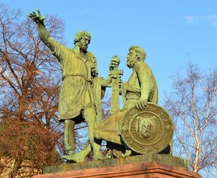 Keywords: minin and pozharsky red square moscow minin pozharsky monument to minin and pozharsky russia against sky clouds monument journey reference point culture history day sunny