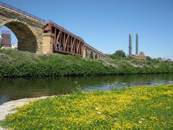 Keywords: minneapolis bridge minnesota river mississippi downtown city usa urban architecture landmark arch sky building cityscape structure exterior america midwest scene outdoors water