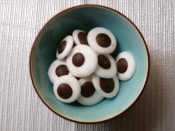Keywords: Mintkyssar.JPG en Mintkyssar Swedish candy sv Mintkyssar own Artifex 2010-06-07 Round candy Mints sweets Chocolate confections Brown and white Bowls with food