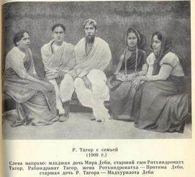 Keywords: Mira Devi, Rathindranath Tagore, Rabindranath Tagore, Pratima Devi, Madhurilata Devi.jpg Rabindranath Tagore with family Left to right youngest daughter Mira Devi eldest son Rathindranath Tagore Rabindranath Tagore wife of Rathindranath Protima Devi eldest daughter of R Tagore Madhurilata Devi Рабинд анат Таго с семьей Слева нап аво младшая дочь и а Деви Деби ста ший сын Ратхинд анатх Таго Рабинд анат Таго жена Ратхинд анатха П отима Деви Деби ста шая дочь Р Таго а адху илата Деви Деби ru Рабинд анат Таго Соб ание сочинений / Под ед Е Быковой А Гнатюка-Данильчука В овиковой Госуда ственное издательство художественной лите ату ы 1961 en Rabindranath Tagore Collected works / Ed by IE Bykova A Gnatyuk-Danilchuk V Novikova Moscow State publishing house of fiction 1961 1909 Author PD-old Rabindranath Tagore in 1909 Rabindranath Tagore's family |