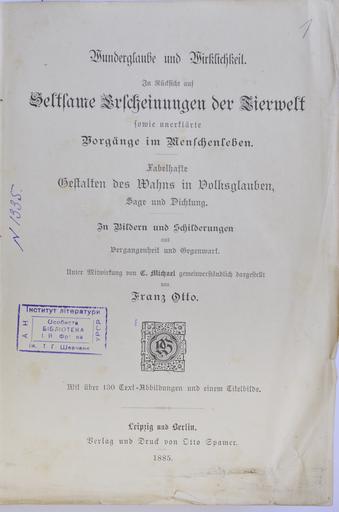 | Keywords: Miracles and reality 1523 tytul.jpg Wunderglaube und Wirklichkeit Лейпциг Бе лін 1885 Титульний а куш З особистої бібліотеки І Ф анка Wunderglaube und Wirklichkeit Leipzig-Berlin 1885 Title From Ivan Franko personal Library 1885 Institution Shevchenko Institute of Literature Digital Collection PD-old-70-1923 1885 books from Germany Franko Personal Library Collections of books in libraries in Ukraine Shevchenko Institute of Literature Uploaded with VicuñaUploader | ||||