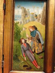 | Keywords: Miracles of Santiago - Indianapolis Museum of Art - DSC00727.JPG The Miracles of Santiago Painting about 1500 Photographed 2011 04 oil on panel 32 x 70 in closed 32 x 138 in open Institution Indianapolis Museum of Art Northern Renaissance gallery credit line James E Roberts Fund Accession number 24 3 I took the photo User Daderot 2011-04-01 16 27 44 Miracles of Santiago | ||||