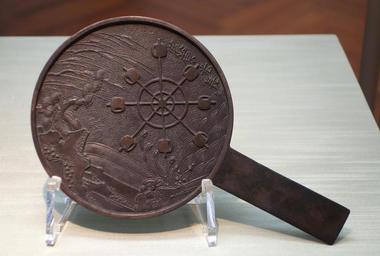 | Keywords: Mirror with Handle, Edo period, 18th century, cascade and watermill design - Tokyo National Museum - DSC06087.JPG en Exhibit in the Tokyo National Museum Tokyo Japan This artwork is old enough so that it is in the public domain 2013-09-03 00 38 54 own Daderot cc-zero Uploaded with UploadWizard Edo bronze mirrors in the Tokyo National Museum | ||||