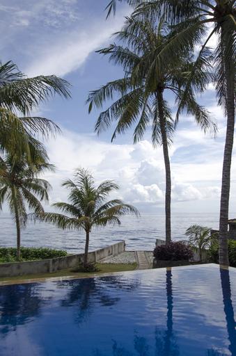 Keywords: mirroring sky water resort palm trees bali relax sea silent blue holiday pool alone summer