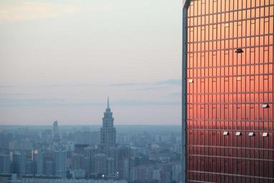 Keywords: mirroring skyline moscow new city skyscraper mood reflection