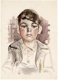 | Keywords: Mischa Breslauer door Leo Kok.jpg nl Mischa Breslauer 1936-1944 was de zoon van de joods-Duitse fotograaf Werner Rudolf Breslauer een goede vriend van de kunstenaar Leo Kok Het gezin Breslauer was in 1938 vanuit Leipzig naar Nederland gevlucht Vanaf 1942 verbleven zij in Westerbork waar Breslauwer fotoreportages maakte en ook tekeningen van Leo Kok fotografeerde In 1944 werd het gezin gedeporteerd Mischa werd vermoord in Auschwitz Alleen een dochter overleefde de oorlog 33 2 x 23 9 cm; 42 5 x 30 cm Bron B1471 vrije tekening getekend; geschilderd; aquarel; conte meerkleurig grafiek en drukwerk Joods Historisch Museum Amsterdam Copyright verzameling Leo Kok bruikleen van dhr en mw Nijstad-de Wijze; voor informatie Joods Historisch Museum 1944-02 http //www geheugenvannederland nl/ /nl/items/JHM01 03293 Leo Kok other versions Custom license marker 2016 01 24 1945 Drawings by Leo Kok |