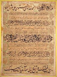 | Keywords: Mishkin-Qalam-23.JPG Calligraphy by Mishkín-Qalam House of Abbud Central Hall Akka <br> The text is from a tablet letter of Baha'u'llah founder of the Baha'i Faith addressed to Ahmad Yazdi <br> Society for Persian Letters Arts Landegg Academy Switzerland 1992 Mishkín Qalam XIX Century Artist Calligrapher Darmstadt Germany Reyhani ISBN 3906714012 This version was taken from the article http //www infosrvr nuk uni-lj si/jana/ICOMd/11Ishikawa pdf ICOM The Conservation and Restoration of a 19th Century Calligraphy of a Baha'i Writing in Arabic by S Ishikawa and P Ravines 1897 Mishkín-Qalam 1826-1912 Reproduction of a painting that is in the public domain because of its age PD-Art Calligraphy by Mishkín-Qalam |
