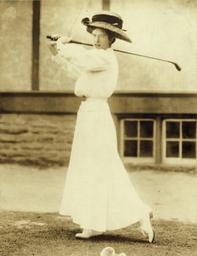 | Keywords: Miss Katharine Harley, former champion of the U.S. won at Chevy Chase, 1908.jpg en Photograph shows Katherine Harley Mrs H Arnold Jackson full-length portrait facing front swinging a golf club; as Kate C Harley she was winner of the U S Women's Amateur Golf Championship of the U S Golf Association at the Chevy Chase Club Chevy Chase Maryland 1908 ppmsca 19494 author PD-1923 PD-Bain 20th-century black and white portrait photographs of standing women at full length 1881 births 1961 deaths Golfers from the United States 1908 in Maryland 1908 in golf |