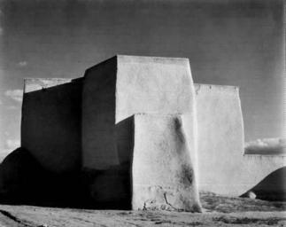 | Keywords: Mission Church Taos LC-USZC4-3921.jpg Mission Church at Rancho de Taos ” northern New Mexico built circa 1772 Platinum print photograph by Laura Gilpin in 1930 Reproduction LC-USZC4-3921 color transparency Built in 1772 by Spanish missionaries and native Americans the Mission Church is an amalgam of European and indigenous building traditions Made of adobe a brick composed of straw and mud the walls slope outward to buttress the structure and to fend off the effects of torrential rains The Mission Church was recorded in photographs and drawings by the Historic American Buildings Survey in the 1930s and has enjoyed great popularity with artists such as photographer Laura Gilpin and painter Georgia O'Keefe who both lived nearby Gift of the photographer 1930 LOC-image USZC4 3921 Laura Gilpin PD-USGov Rancho de Taos church Black and white photographs of religious buildings Black and white photographs of New Mexico 1930 in New Mexico Laura Gilpin |