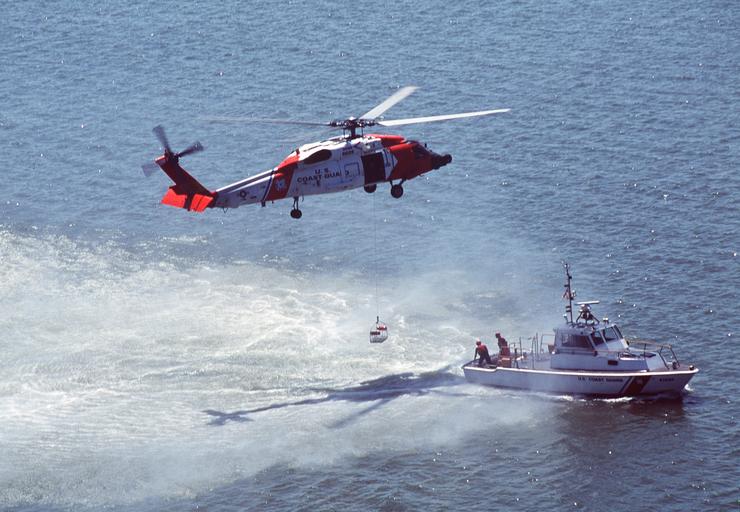 Keywords: MISSIONS DAY DVIDS1081994.jpg en Yorktown Va April 27 -- An HH-60 Jayhawk helicopter from Air Station Elizabeth City lowers its rescue basket to a 41-foot utility boat from Reserve Training Center Yorktown during a search and rescue demonstration for Coast Guard Missions Day The purpose of Missions Day is to raise the visibility of the Coast Guard by providing staff-level employees of the U S Congress and administration a full day of Coast Guard missions-intensive and hands-on experiences USCG photo by PA2 Jacquelyn Zettles Unit U S Coast Guard District 5 DVIDS Tags Search and Rescue; BOAT; DEMONSTRATION; 41-foot utility boat; search and rescue demonstration; MISSIONS; DAY; 41-FOOT; HH-60; JAYHAWK; UTILITY; HELICOPTER; CGVI; HH60J; HH-60 Jayhawk helicopter; Missions Day; DVIDS Bulk Import 2001-04-27 https //www dvidshub net/image/1081994/missions-day 1081994 2013-12-11 19 27 YORKTOWN VA US PD-USGov CGAS Elizabeth City Images from DoD uploaded by Fæ |