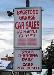 | Keywords: Misspelling.purchase.arp.500pix.jpg en Misspelt sign at a garage at Bagstone north of Bristol England Purchased has been misspelt as Purchesed To save embarrassment the telephone number has been blurred <br> Taken by Adrian Pingstone in August 2004 and released to the public domain 2004-08 Own Adrian Pingstone at http //en wikipedia org en wikipedia Arpingstone Adrian Pingstone Original upload log page en wikipedia Misspelling purchase arp 500pix jpg 2004-08-20 12 50 Arpingstone 500×691 110994 bytes <nowiki>Misspelling</nowiki> Dyslexia Signs in the United Kingdom Spelling mistakes in English |