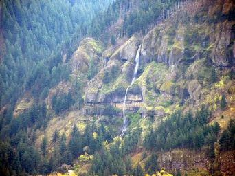 Keywords: Mist Falls.jpg en Mist Falls along the Columbia Gorge Highway near Multnomah Falls as viewed from Highway 14 in Washington Own PJ Blalock 2005-03-31 Waterfalls in Washington state