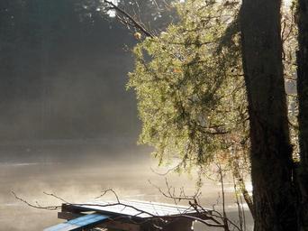 Keywords: mist fog dimma mystisk lugna bro vatten ån morgonen