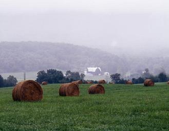 Keywords: mist shenandoah valley rural hay bales virginia agriculture scenic tranquil quiet landscape farm grey gray foggy ridge usa nature