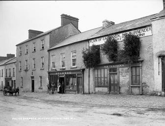 | Keywords: mitchelstown cork ireland munster donkey cart barrell boy dog police barracks r.i.c. ric royal irish constabulary royalirishconstabulary carcases butcher apron smoking pipes delarue grocer tobacco snuff fabric material birds plan of campaign planofcampaign no surrender nosurrender o'sullivan osullivan pollard bran oats grafitti shutters robert french robertfrench william lawrence williamlawrence lawrence collection lawrencecollection glass negative glassnegative 1880s upper cork street uppercorkstreet thomas delarue thomasdelarue maurice o'sullivan mauriceosullivan kingston estate kingstonestate 1887 june william davis williamdavis countess of kingston countessofkingston national library of ireland nationallibraryofireland evictions blackandwhite monochrome building architecture outdoor black and white Feeling some performance anxiety because this photo is very special - it's our 1,000th photo on Flickr Commons! However, it's also special in that it's a quite rare (we think) capture of an eviction in a town. Most that we have are in rural settings. We thought this may have been taken in September 1887 around the time of the "Mitchelstown Massacre", but as always, research here was a great help in establishing a more likely date of June 1887... The Plan of Campaign was an attempt to gain lower rents through collective bargaining, because prices for agricultural exports had fallen dramatically in the 1880s. Date: Circa June 1887 NLI Ref.: L_ROY_01083 Feeling some performance anxiety because this photo is very special - it's our 1,000th photo on Flickr Commons! However, it's also special in that it's a quite rare (we think) capture of an eviction in a town. Most that we have are in rural settings. We thought this may have been taken in September 1887 around the time of the "Mitchelstown Massacre", but as always, research here was a great help in establishing a more likely date of June 1887... The Plan of Campaign was an attempt to gain lower rents through collective bargaining, because prices for agricultural exports had fallen dramatically in the 1880s. Date: Circa June 1887 NLI Ref.: L_ROY_01083 |