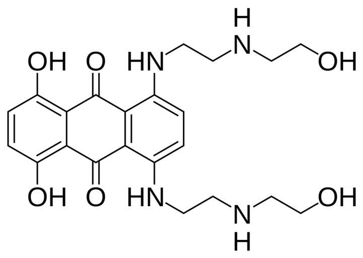 | Keywords: Mitoxantrone skeletal.svg Skeletal formula of mitoxantrone Style made to match Image Methylprednisolone svg by Calvero Created using http //www acdlabs com/download/chemsk html ACD/ChemSketch 10 0 and Inkscape Own 2007-09-18 Fvasconcellos 01 51 19 September 2007 UTC Mitoxantrone |