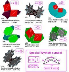 | Keywords: Mixed Wythoff symbol examples.png en wikipedia 2011 October 19 Talk Wythoff symbol describing a special form for 7 uniform polyhedrons with cross-trapezoid vertex figures The Wythoff symbol in purple is from Coxeter mixing two symbols The symbol in black is what is usually given and incomplete 2007-01-12 Own Tomruen wikipedia en Tomruen Original upload log page en wikipedia Mixed_Wythoff_symbol_examples png 2007-01-12 07 13 Tomruen 764×807 172586 bytes <nowiki></nowiki> Polyhedra | ||||